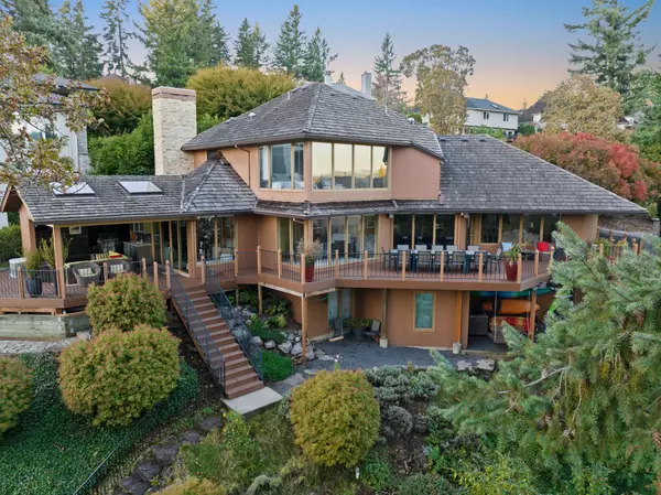 Tucked at the end of a private cul-de-sac in Lake Oswego, this residence embodies sophisticated indoor-outdoor living with panoramic views of Oswego Lake. Located within the distinguished Village on the Lake neighborhood, one of the community's most sought-after lake easements, it offers an exceptional blend of privacy, craftsmanship, and lake access. Thoughtfully designed, the home features multiple decks, including a wraparound main-level terrace and lower-level entertaining patios that frame the sweeping lake vistas. At its heart, the gourmet kitchen combines form and function with stainless steel appliances, custom cabinetry, and an expansive island ideal for gathering. A fully equipped prep kitchen, complete with an additional grill, high-powered two-burner range, second dishwasher, freezer, and wine refrigerator, enhances the home's effortless entertaining experience. The primary suite serves as a tranquil retreat with breathtaking views of Mt. Hood and Oswego Lake. The spa-inspired bathroom invites relaxation with a soaking tub, dual sinks, dedicated vanity, and walk-in shower. Expansive living areas flow seamlessly to a covered outdoor patio, where a built-in fireplace, grill, refrigerator, and sink create a refined setting for year-round enjoyment. A private elevator connects the home's levels with ease, while an EV charger and whole-home generator provide modern convenience and peace of mind. The sun-filled yard completes the setting, a serene outdoor haven surrounded by the natural beauty and quiet elegance of its surroundings.